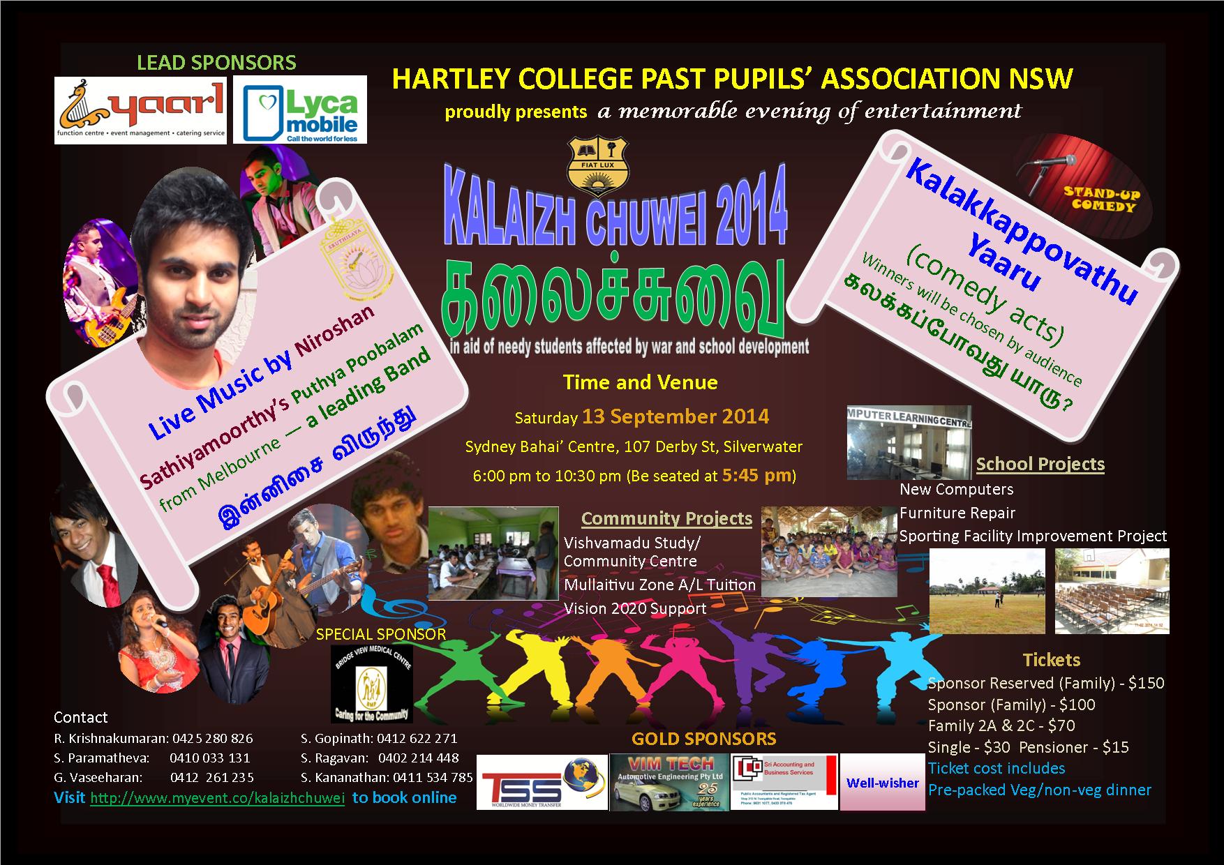 இந்நிகழ்வானது எதிர்வரும் சனிக்கிழமை Sydney Bahai’ Center, 107 Derby St, Silverwater எனும் இடத்தில் மாலை 06.00 மணியிலிருந்து இரவு 10.30 மணிவரை நடைபெறவுள்ளது என ஏற்பாட்டாளர்கள் அறிவித்துள்ளனர்
